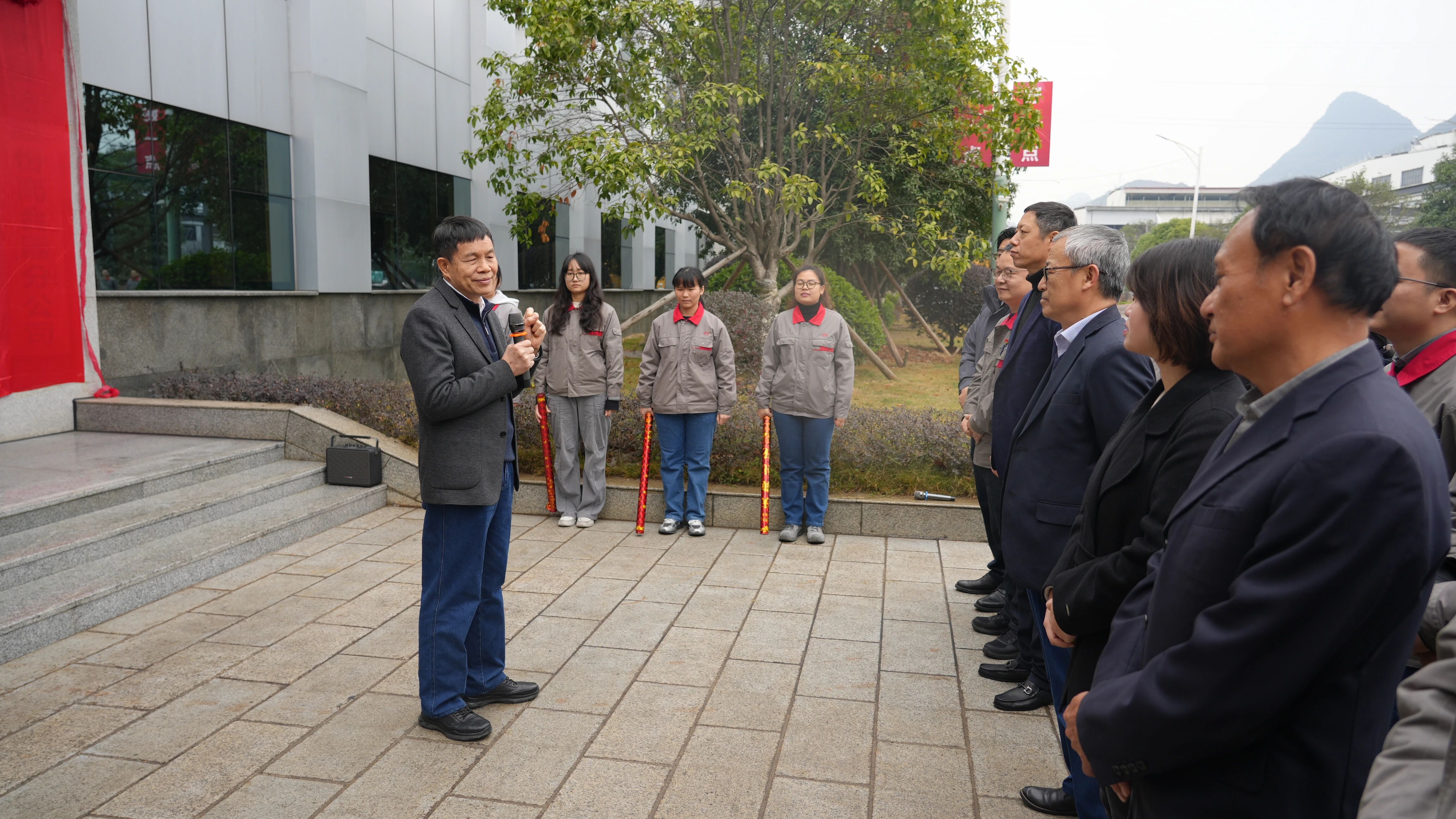 在全體與會人員的熱烈掌聲中,黎福超董事長與其他領導一同為升級后的辦公樓揭牌,現場氣氛隆重而熱烈。揭牌儀式結束后,參會人員共同參觀了裝修一新的辦公區域。